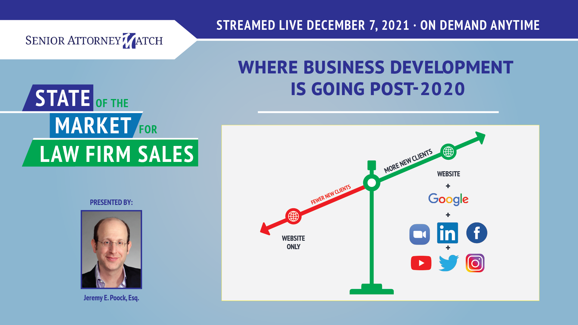Supply of New Clients: The “supply” of new clients will continue favoring those law firms whose business development efforts focus on Multi-Channel Digital Marketing.
