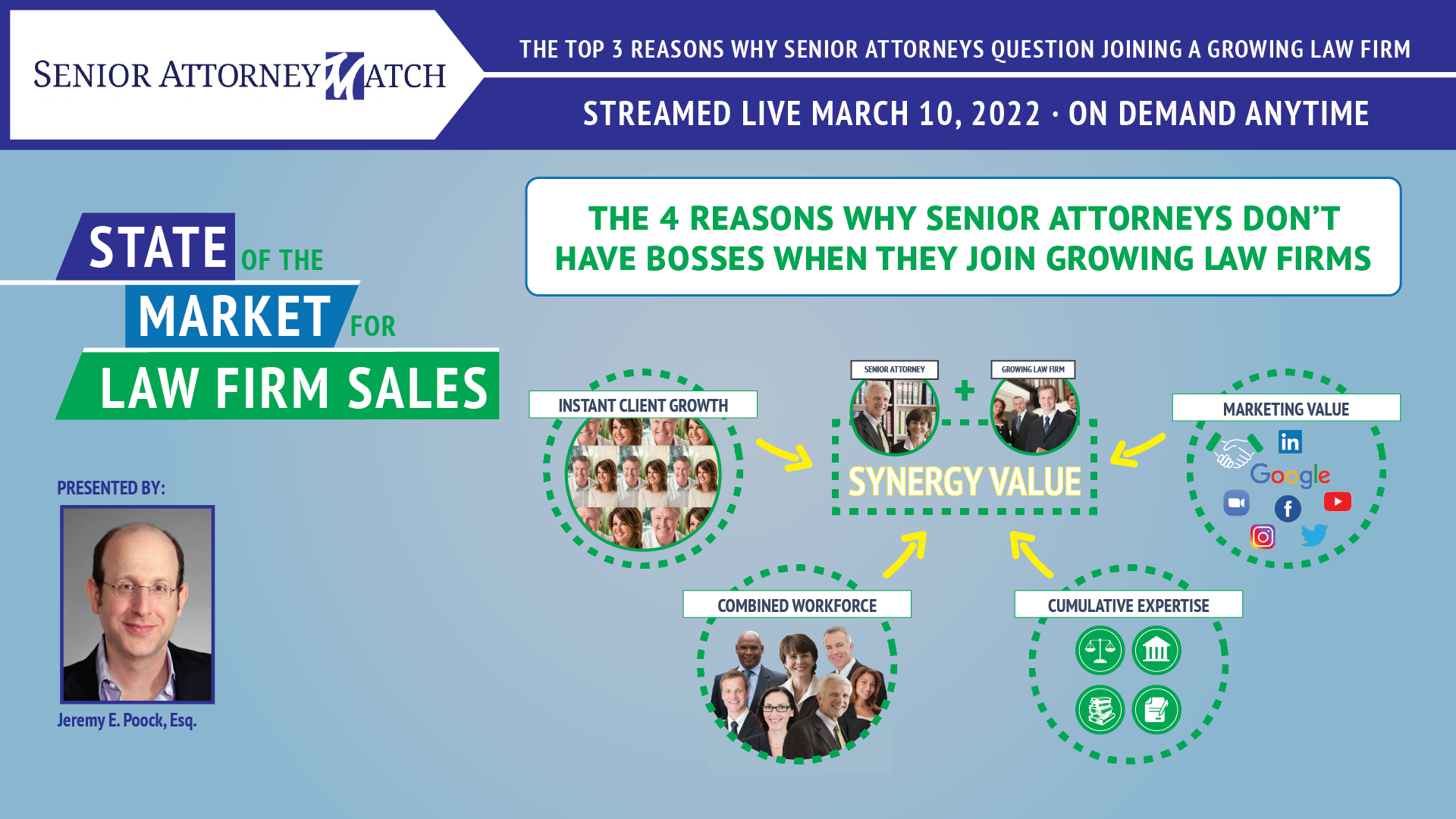 As Jeremy E. Poock, Esq., explains, for the following 4 reasons, Senior Attorneys do not suddenly have bosses at the Growing Law Firms that they join: