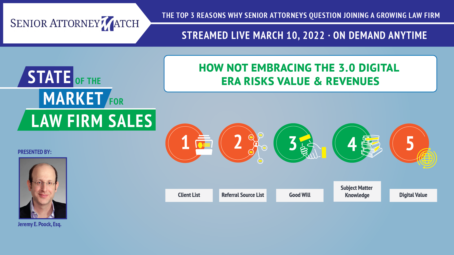 As Jeremy E. Poock, Esq. explains, by Senior Attorneys not adopting Multi-Channel Digital Marketing in today’s 3.0 Digital Era for Law Firms, their Client List and Referral Source List “Value Chips” have begun not replenishing as much as they did in yesteryear.
