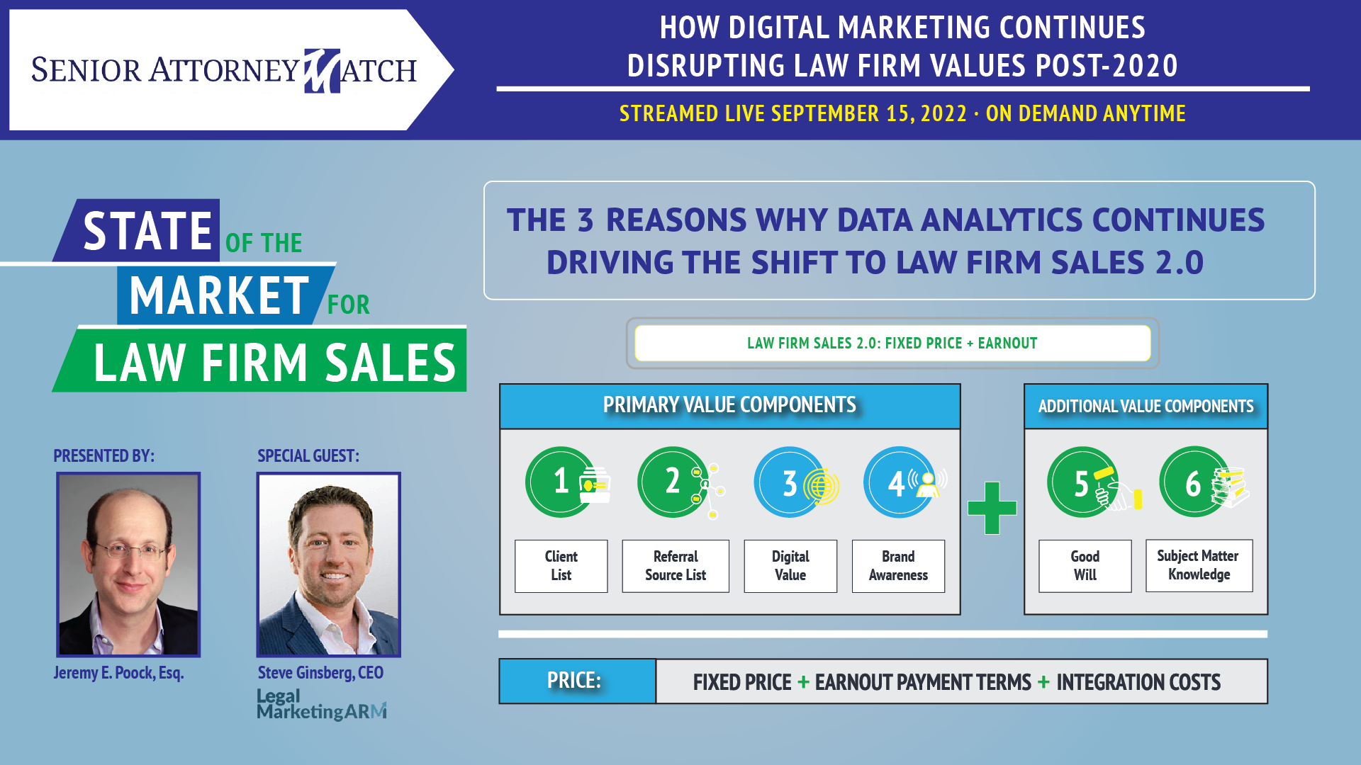 As Jeremy E. Poock, Esq. explains, data analytics continue driving the shift from Law Firm Sales 1.0 to Law Firms Sales 2.0 because data analytics provide the following 3 key pieces of information: